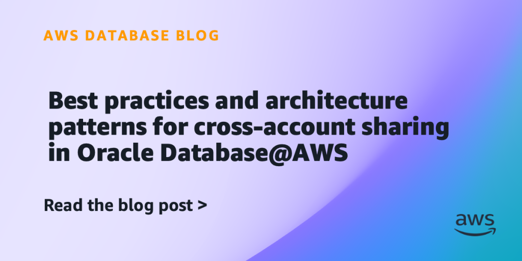 In this post, we walk through the available options for sharing Oracle Database@AWS (ODB@AWS) resources across AWS accounts. We also cover common cross-account architecture patterns, along with best practices and key considerations. This helps you design your ODB@AWS architecture across your AWS accounts efficiently.