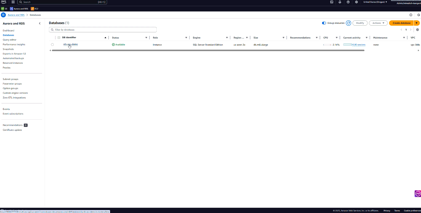 - For DB identifier, select your RDS for SQL Server instance. In this example, I chose rds-asv-demo.