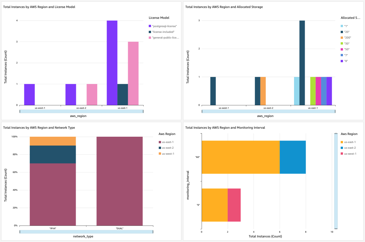 In this post, we show you how to build a centralized dashboard for monitoring Amazon RDS configurations across your organization by using AWS Config and Amazon Quick Suite. This solution delivers detailed insights across different areas, such as summary metrics, backup configurations, security posture, engine and support information, extended configurations, and resource tagging.