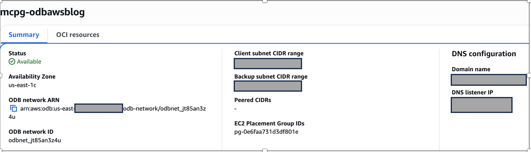 After creating your ODB network, retrieve the placement group ID using the GetODBNetwork API or from the console.