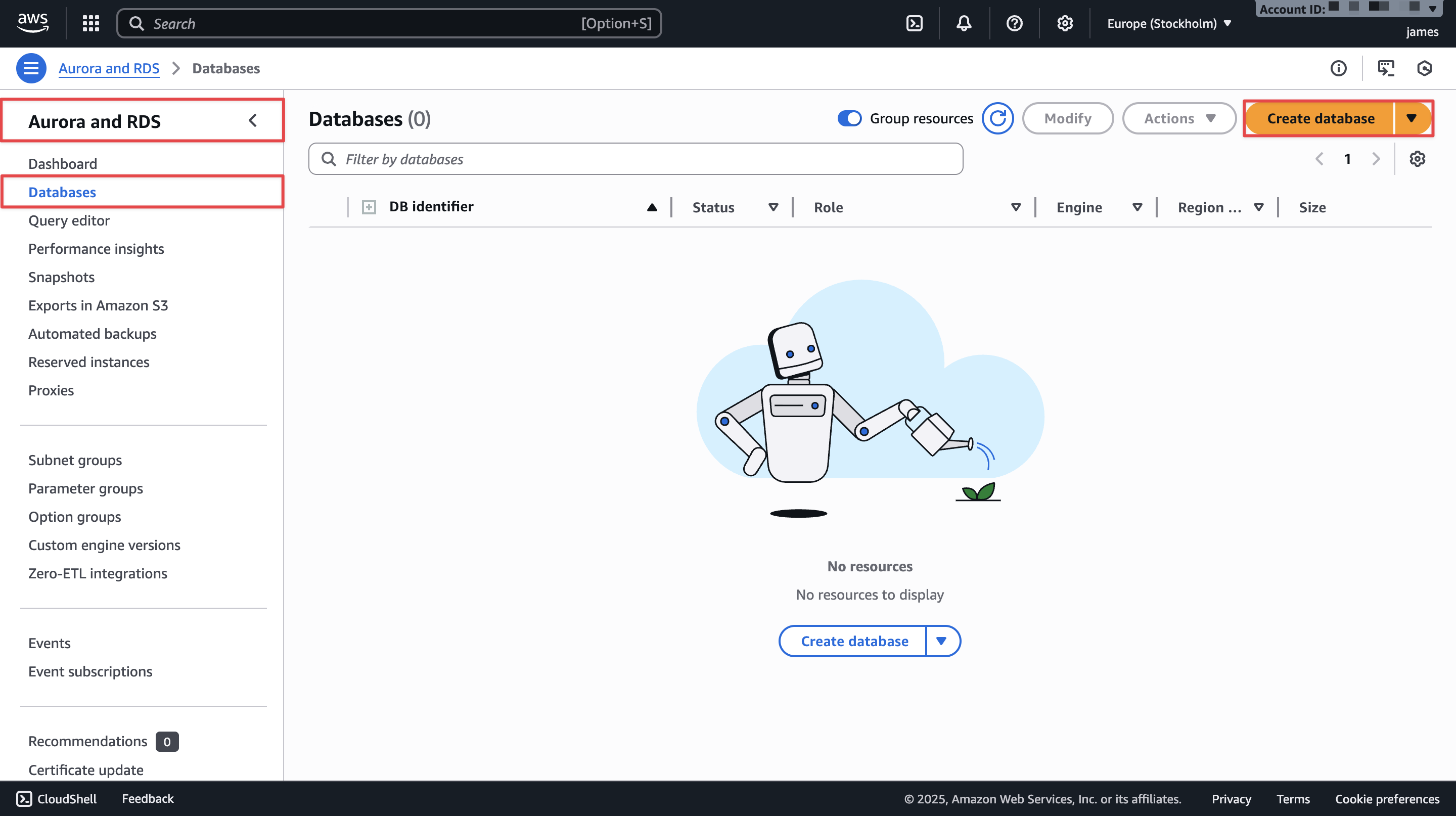 - Choose Create database.