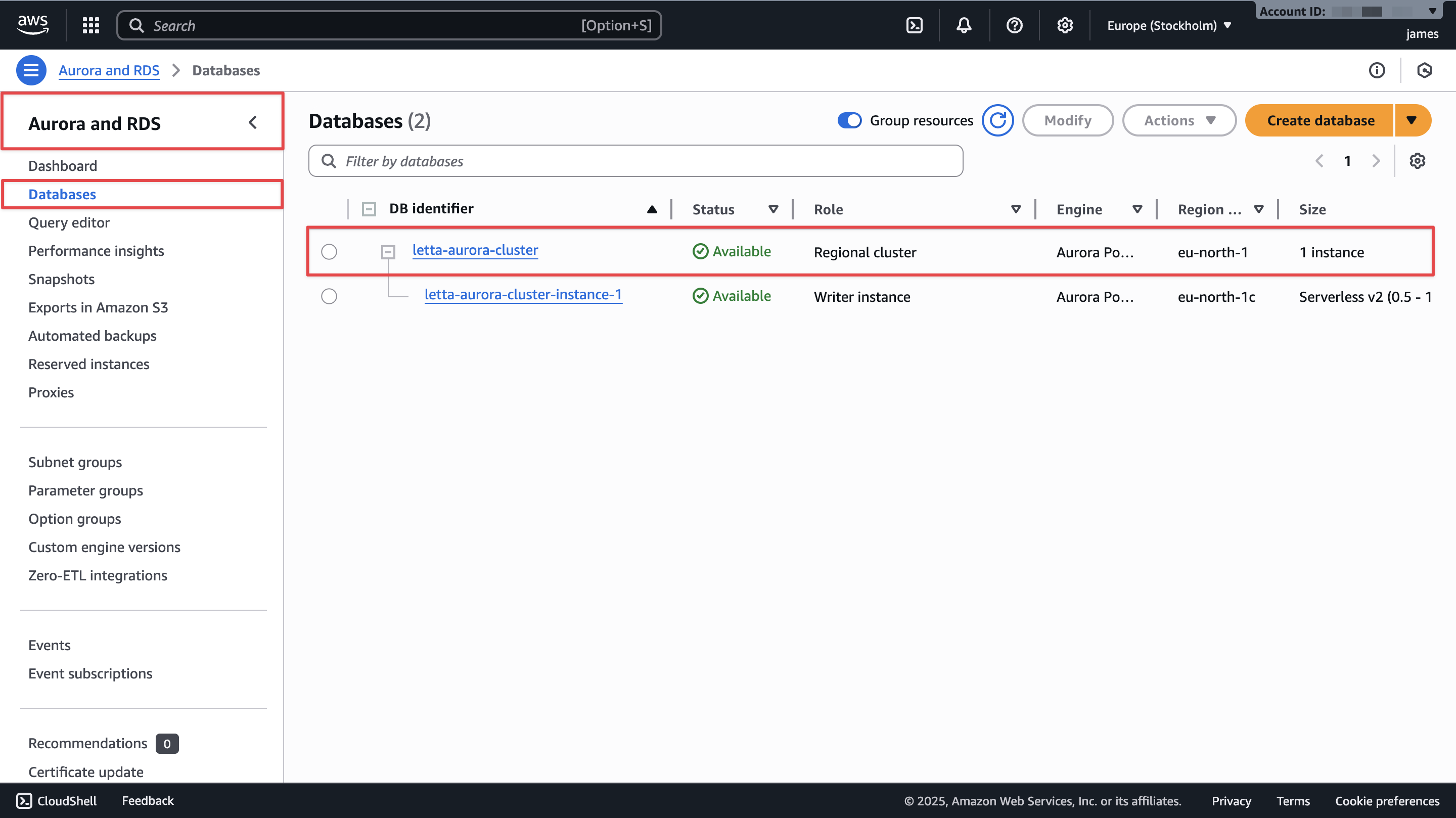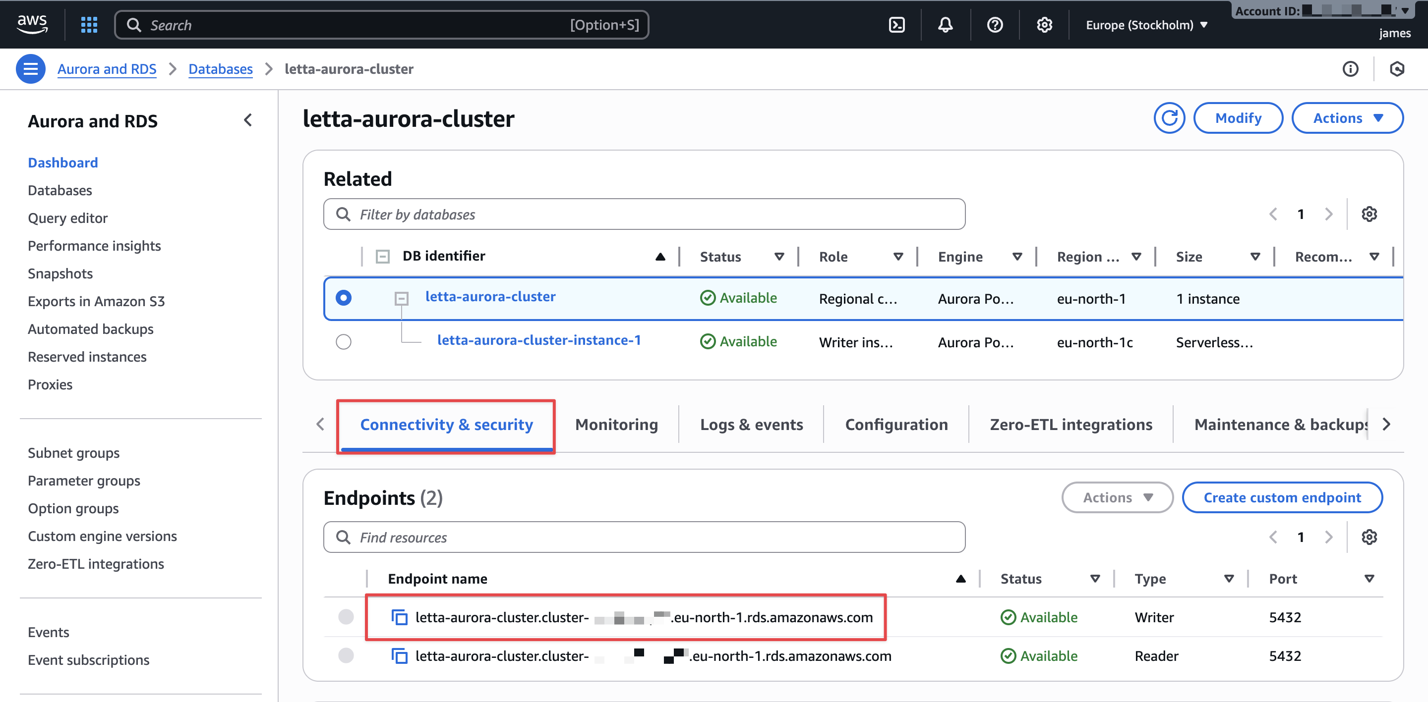 Your Aurora cluster is now ready for Letta connections.