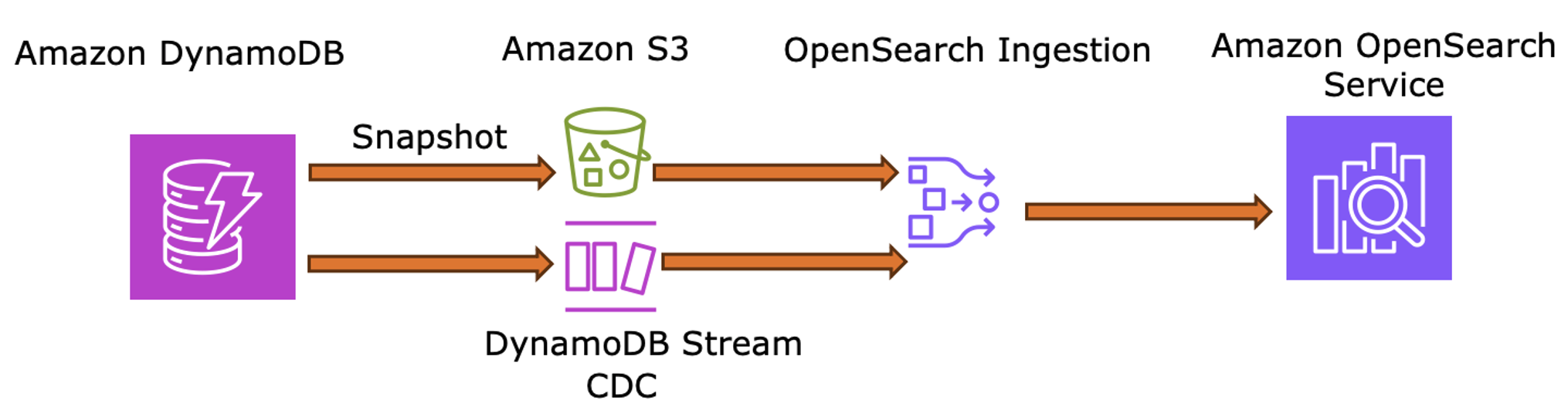 Phase 2: Continuous synchronization (delta) – After the baseline is established, the system transitions to near real-time updates using Change Data Capture (CDC). OSI monitors incremental changes from source logs, such as Amazon DynamoDB Streams, DocumentDB Change Streams, or PostgreSQL Write-Ahead Logs (WAL), to keep indices current.