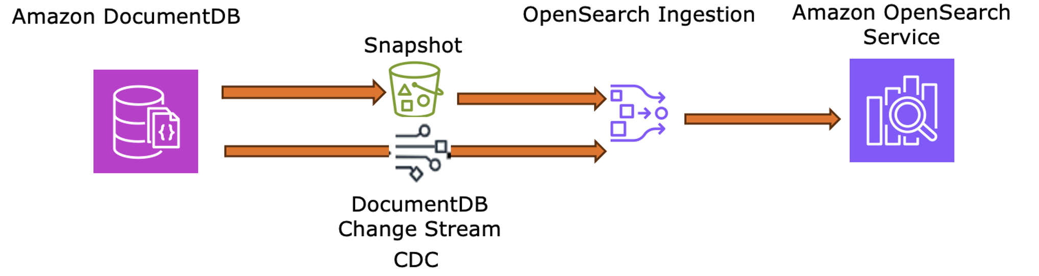 - Real-time sync – Enable Change Streams on DocumentDB for OSI to capture and push incremental updates (new releases, metadata changes) directly to OpenSearch.