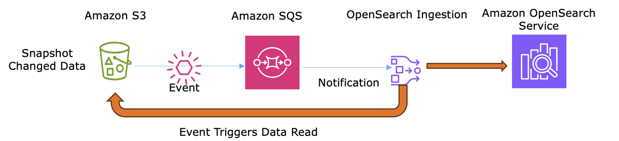 - OSI configuration – Use the S3 source plugin and Amazon SQS notifications to trigger automatic ingestion as new log batches arrive.