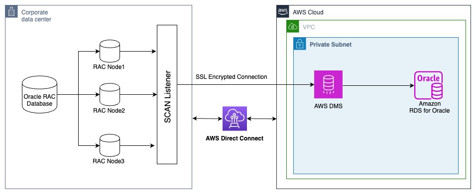 To enable SSL connectivity between AWS DMS and your Oracle RAC database, you’ll need to import the SSL certificate that was either previously configured in your on-premises Oracle RAC and ASM environments, or create a new certificate following SSL Support for an oracle endpoint.