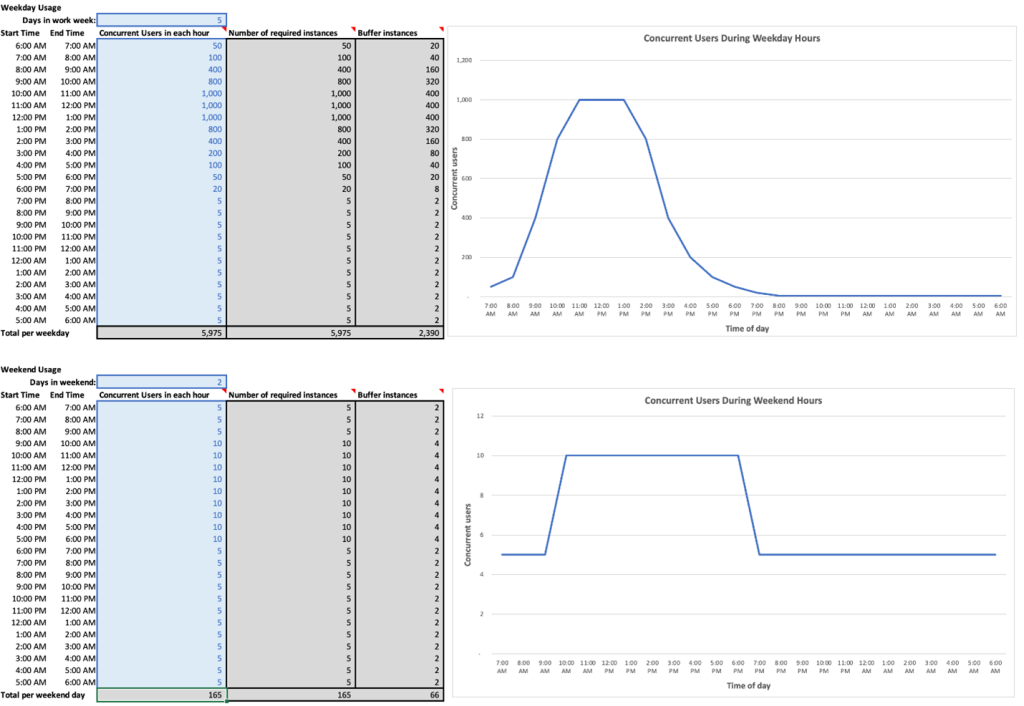And for the usage pattern, you expect (Observe number of instances required are less than the number of users):