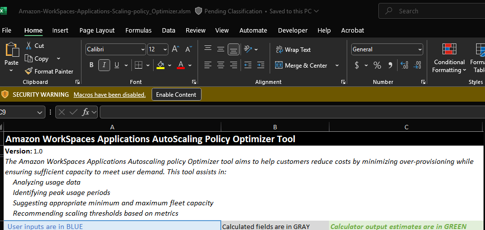- Download the Amazon WorkSpaces Applications Scaling Optimizer Tool: Microsoft Excel File