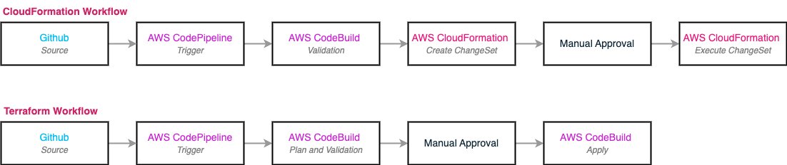 Figure 2: CloudFormation and Terraform pipeline deployment flows