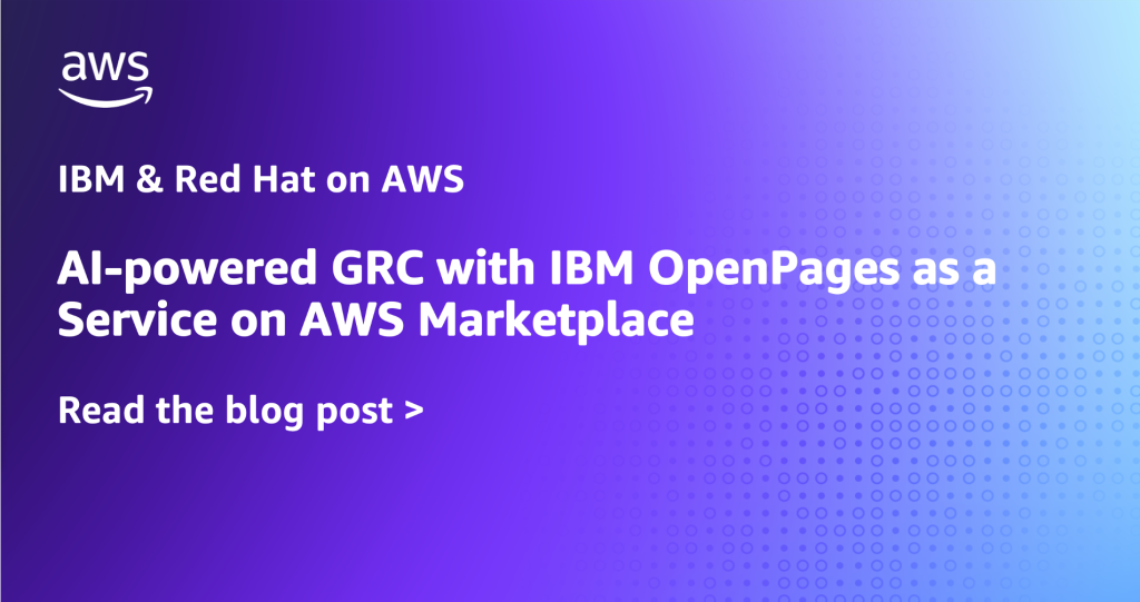 IBM OpenPages, an AI-powered governance, risk, and compliance (GRC) solution, is now available on AWS Marketplace. You can access integrated risk management, regulatory compliance, and audit functions in a single software-as-a-service (SaaS) environment. When GRC functions operate from separate systems, teams spend more time consolidating information than acting on it. With rapidly changing regulatory obligations […]
