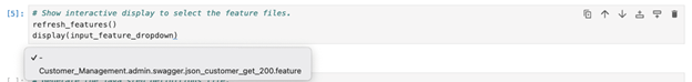 4. Run the next cell in the notebook which sets up the prompt for Cucumber test scenario generation and asks for your input. You’ll need to select the feature file
