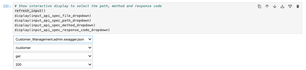 2. Run the next cell which asks you to provide inputs for the API specification file, endpoint selection, method and response code.