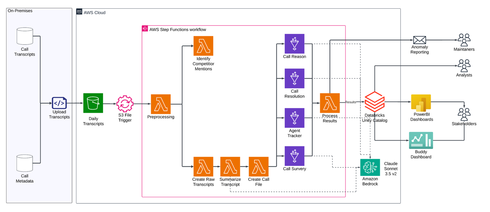 - Amazon S3 continued to serve as the primary storage for raw call transcripts