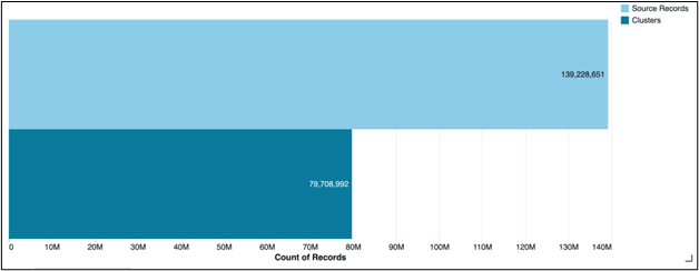 The sample dataset, shown in Figure 2, contained 139,228,651 source records, which Chuck Data resolved into 79,708,992 unique customer clusters — a 43% reduction in duplicate records