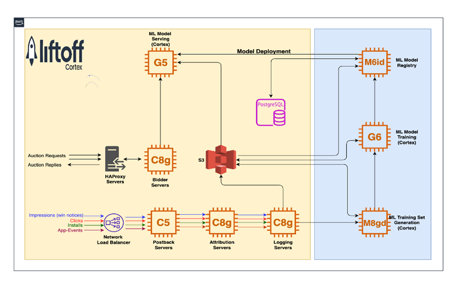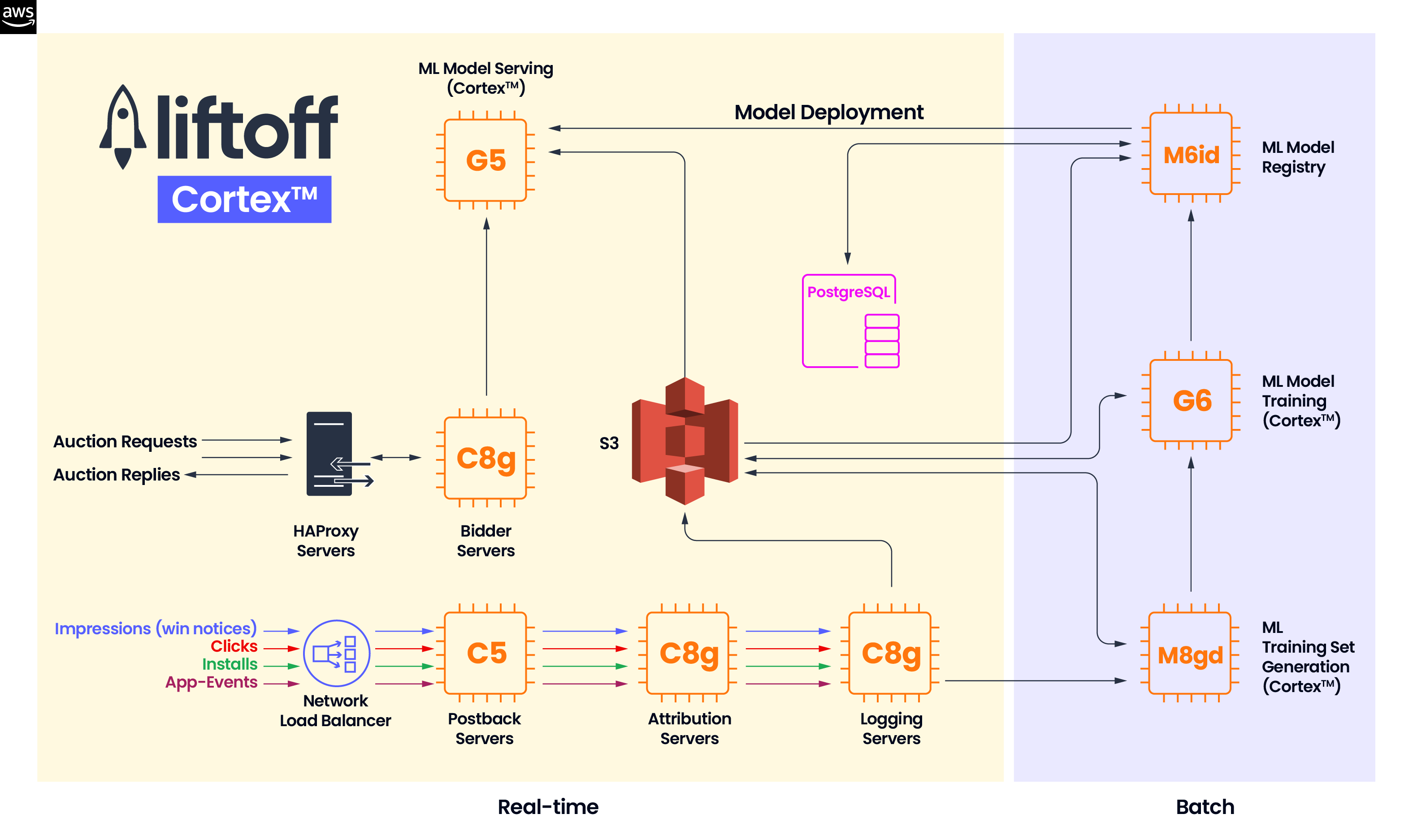 In this blog we explore how Liftoff built and scaled Cortex, their AI-powered growth platform, on AWS using the latest neural network technology and AWS Graviton Processors. We discuss how Cortex addresses the challenges of training hundreds of models per day, with over 1 Petabyte of new data daily. All, while lowering infrastructure costs and improving customer conversion performance.