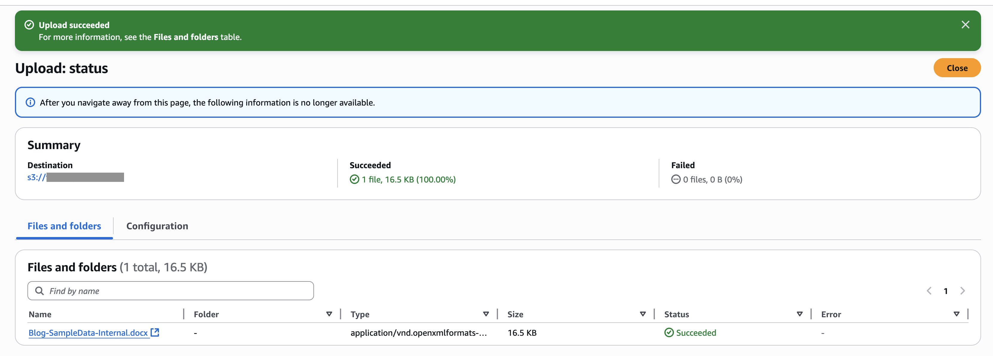 Complete the following steps to configure documents from your S3 bucket as an internal data source:
