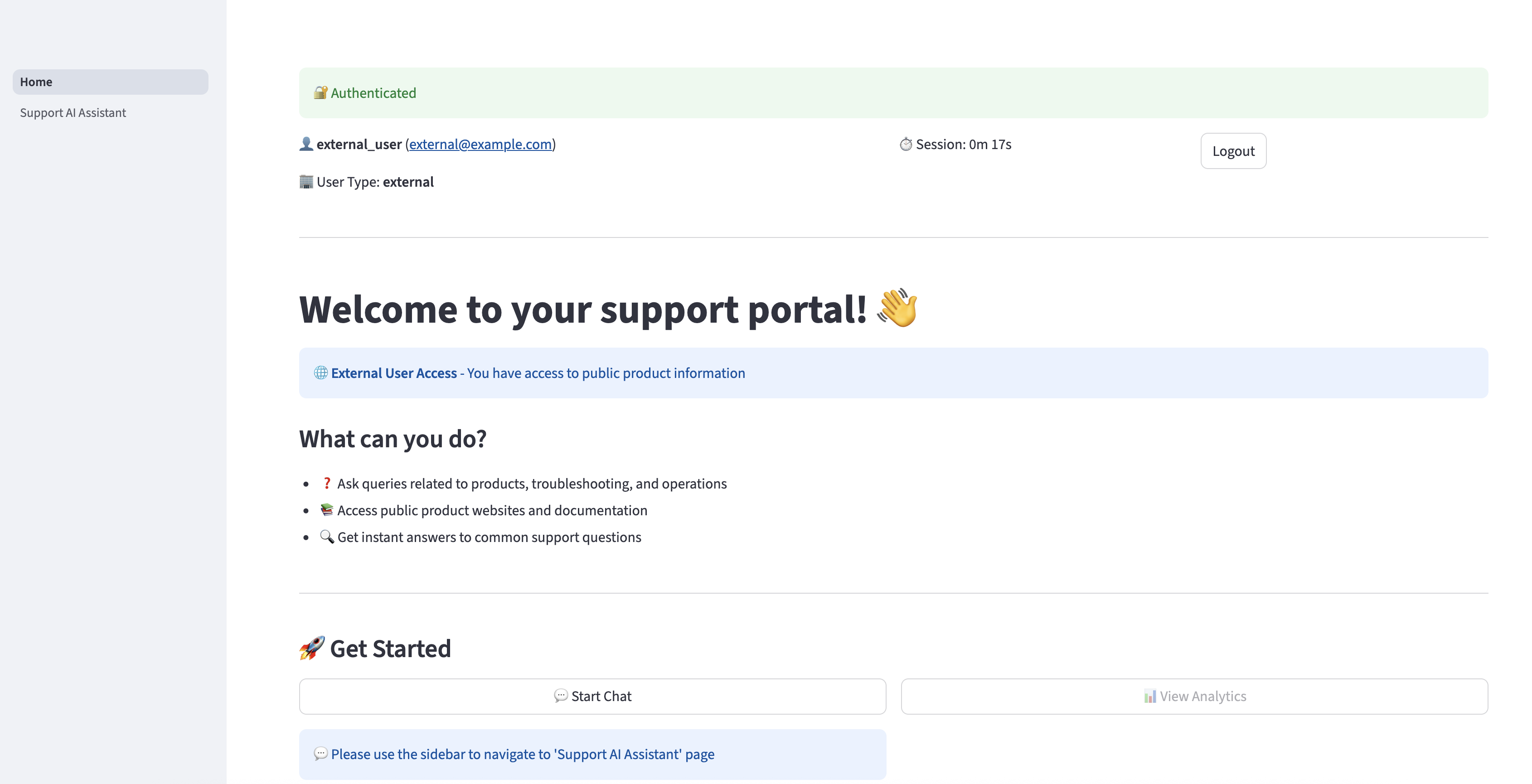 Log out and log in again as an internal user, and ask the same queries. The internal user can access the relevant information available in the internal documents.