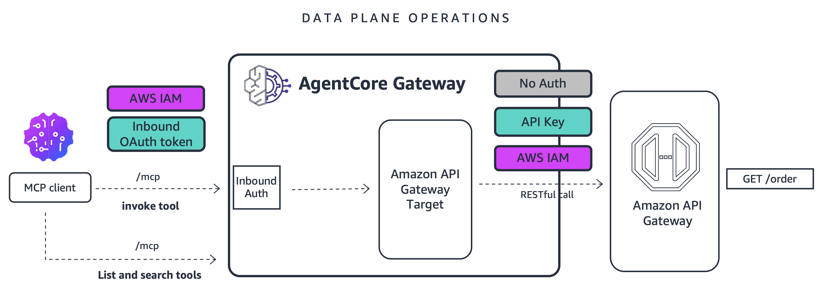 AgentCore Gateway now supports API GatewayAs organizations explore the possibilities of agentic applications, they continue to navigate challenges of using enterprise data as context in invocation requests to large language models (LLMs) in a manner that is secure and aligned with enterprise policies. To help standardize and secure those interactions, many organizations are using the Model Context Protocol (MCP) specification, which defines how agentic applications can securely connect to data sources and tools.