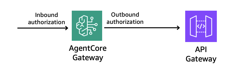 Inbound authorization authenticates incoming user requests. Outbound authorization helps AgentCore Gateway to securely connect to gateway targets, such as an API Gateway, on behalf of the authenticated user.