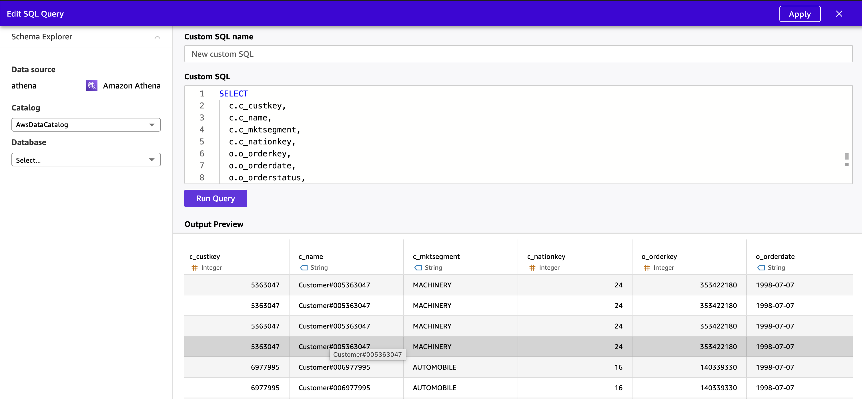 SELECT * FROM blog_qs_athena_tpc_h_db_sql.customer_csv LIMIT 10;