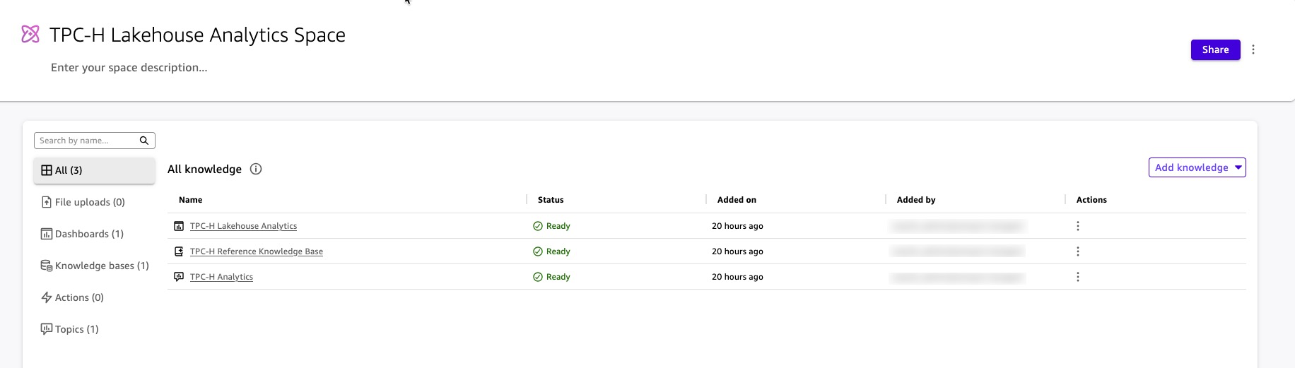 TPC-H Analytics Agent. - Attach the Space: Quick can identify and attach