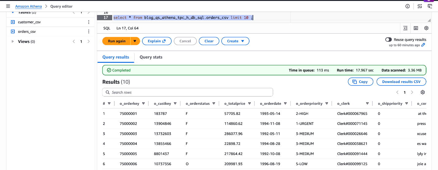 SELECT * FROM blog_qs_athena_tpc_h_db_sql.orders_csv LIMIT 10;
