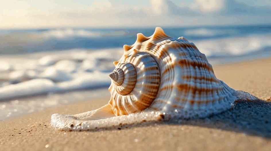 We use the following input prompt: “Closeup of a large seashell in the sand, gentle waves flow around the shell. Camera zoom in.”We receive the following generated video as output.