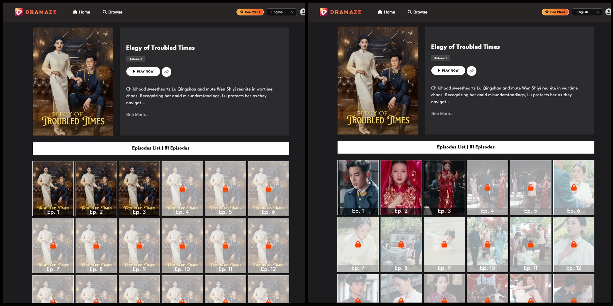 The following screenshots show a before (on the left) and after (on the right) comparison of the Dramaze AI-driven poster creation.