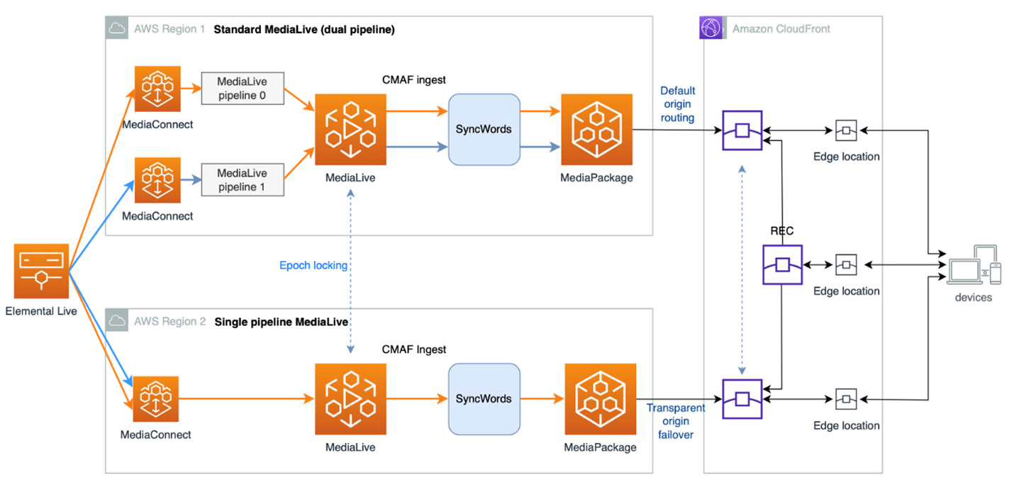 For high-value live streaming events, a resilient and redundant architecture is crucial. While the reference architecture demonstrates a comprehensive cross-AWS Region solution with full redundancy, you can adapt it to match your specific needs and budget: