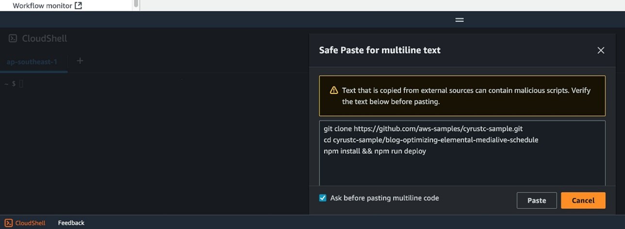 To deploy the solution using AWS CDK, on the AWS Management Console, navigate to AWS CloudShell, as shown in the following screenshot.