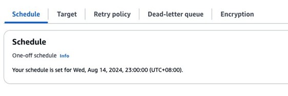 Note: The Amazon EventBridge schedule is automatically removed after it starts.