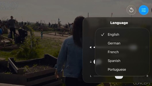 Fig. 5: MPEG-H Audio on-screen display on iOS mobile player for audio object selection and user personalization