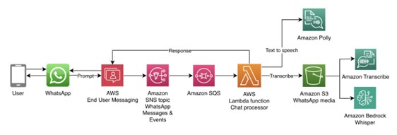With AWS End User Messaging, businesses can now enable both voice note input and voice note responses on WhatsApp. Customers send a voice note, and a bot can respond with a natural-sounding voice note reply. Note: This solution processes asynchronous voice notes (recorded audio messages), not real-time voice calls. In this blog post, we explore why voice notes matter, where they make a difference, and how AWS helps you enable them through a sample voice note messaging solution.