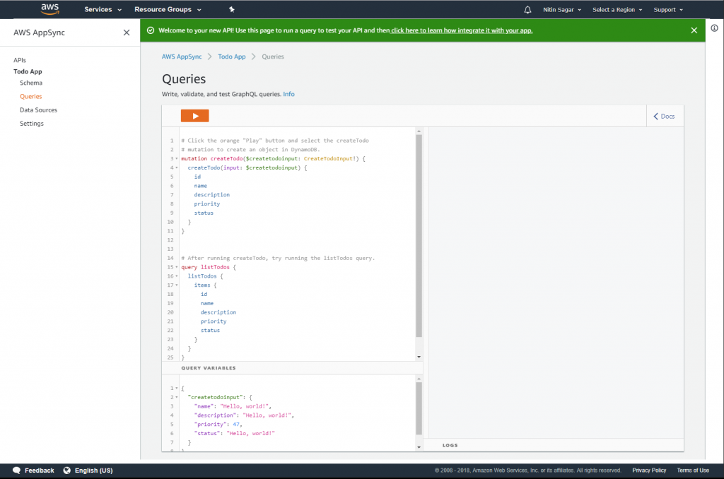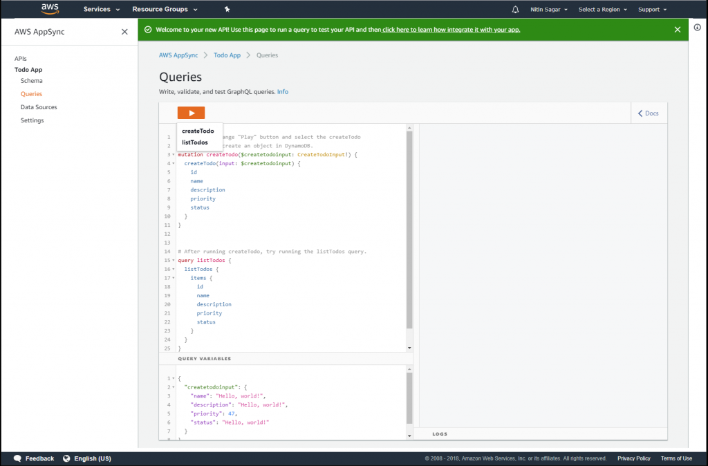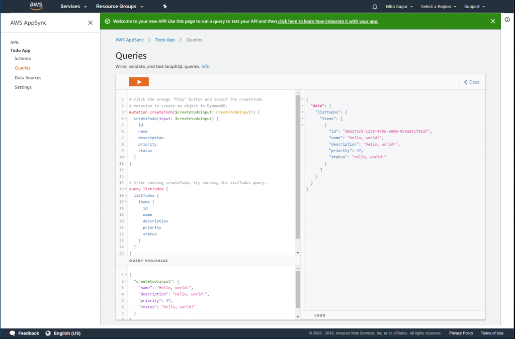 - That’s all you need to create an API. AWS AppSync now does the heavy lifting of creating the required DynamoDB table and resolver for this data model. After the resources are created, you’re automatically taken to the Queries page where you can test your API.