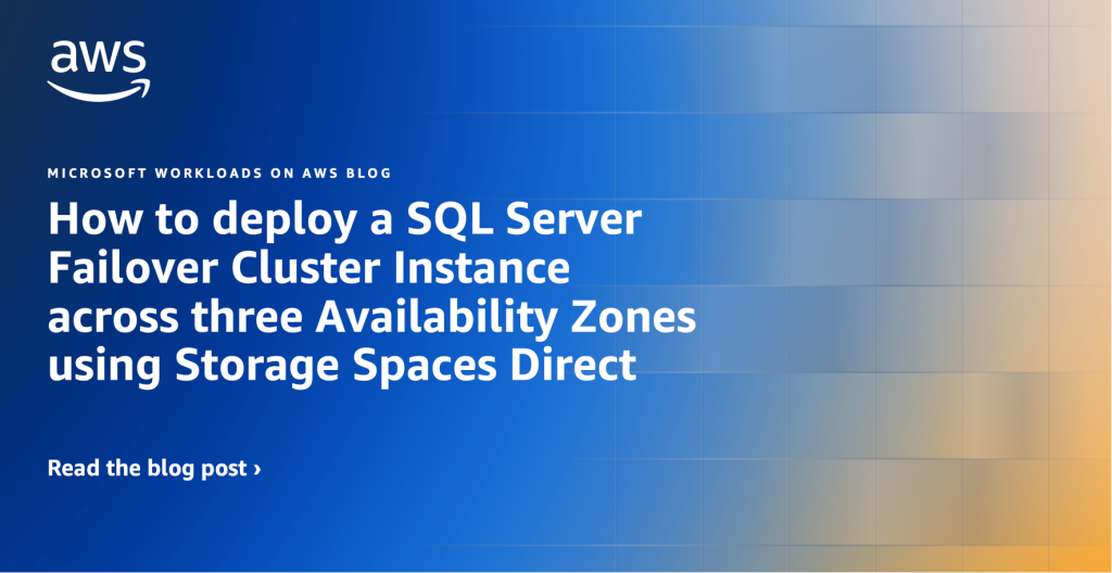 In this blog, we’ll demonstrate how to architect and implement a high-availability Windows Server Failover Cluster (WSFC) with SQL Server using Amazon Elastic Compute Cloud (Amazon EC2) and Amazon Elastic Block Storage (Amazon EBS) across three Availability Zones (AZs). This approach transcends the traditional two-AZ limitations of Amazon FSx and one-AZ limitation of EBS multi-attach. […]