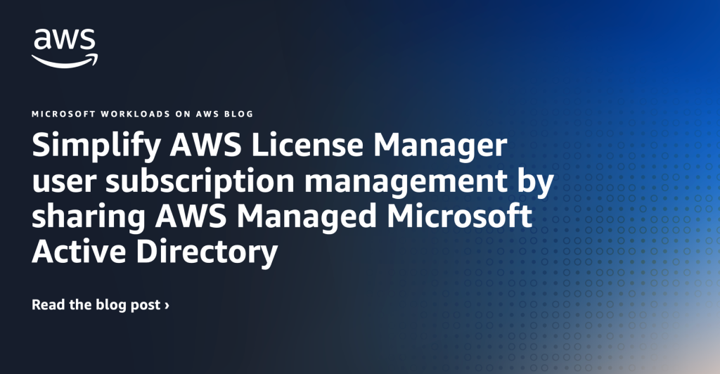 In this blog, we’re going to show you how AWS License Manager can leverage the directory sharing feature available from AWS Directory Services for AWS Managed Microsoft Active Directory (AWS Managed Microsoft AD) to centrally manage user subscriptions services while using multiple Amazon Web Services (AWS) accounts. AWS License Manager offers you user-based subscriptions for […]