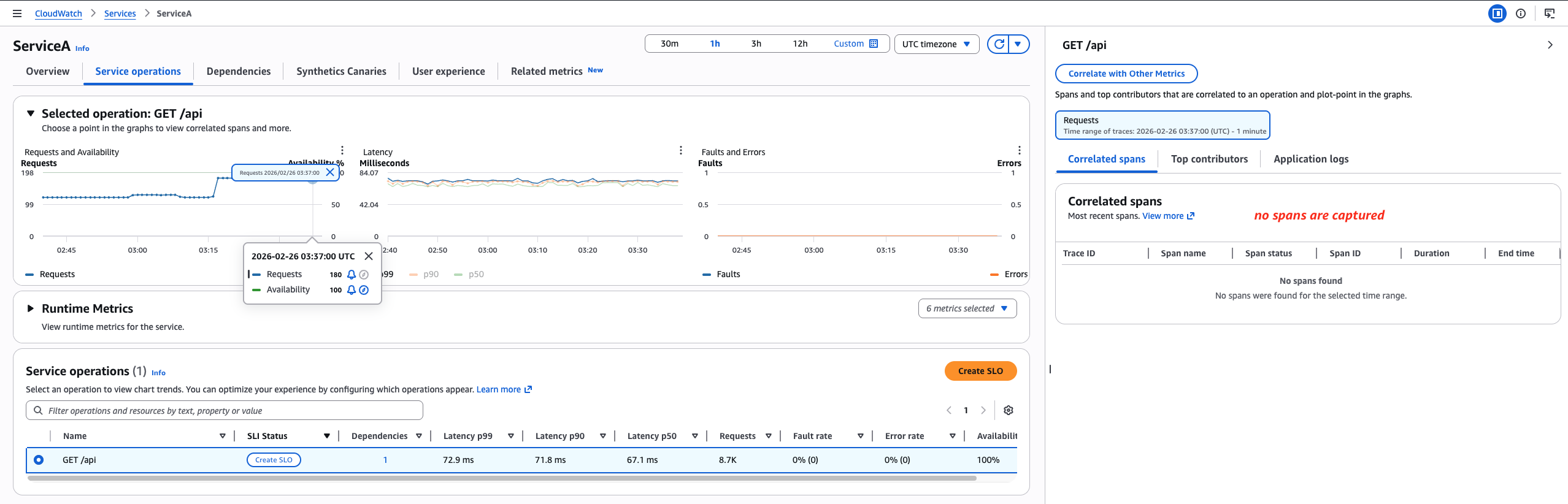 - Enabled CloudWatch Application Signals for the supported services before proceeding.