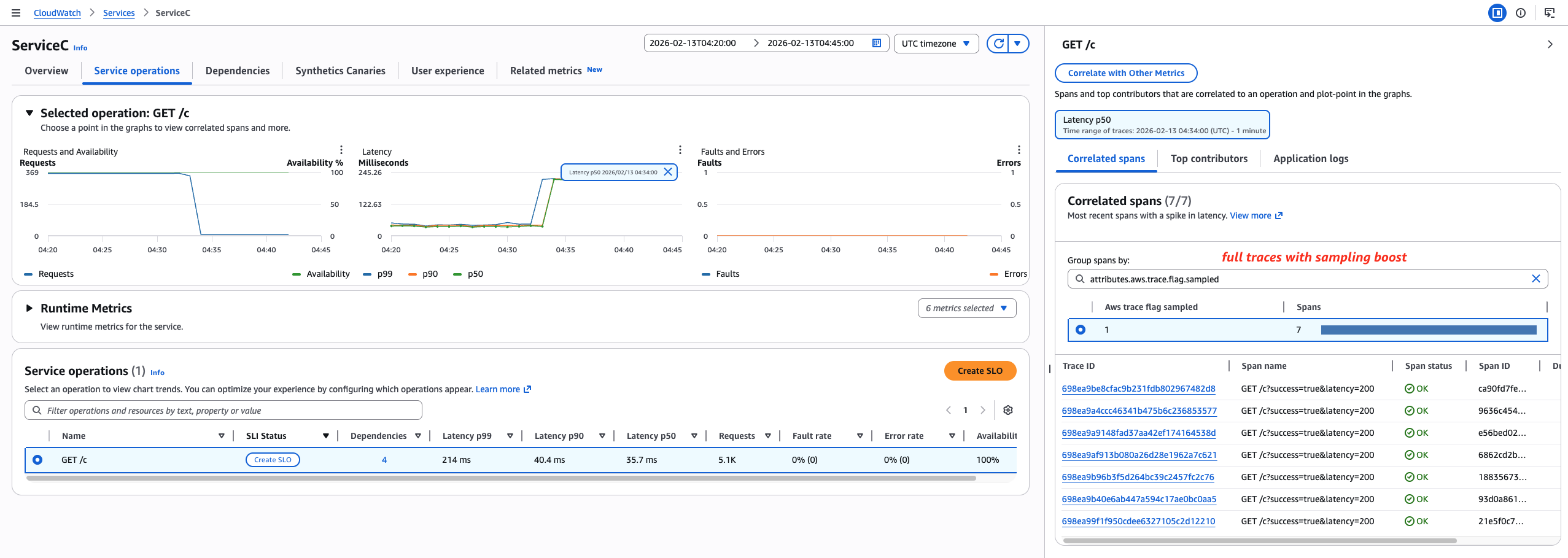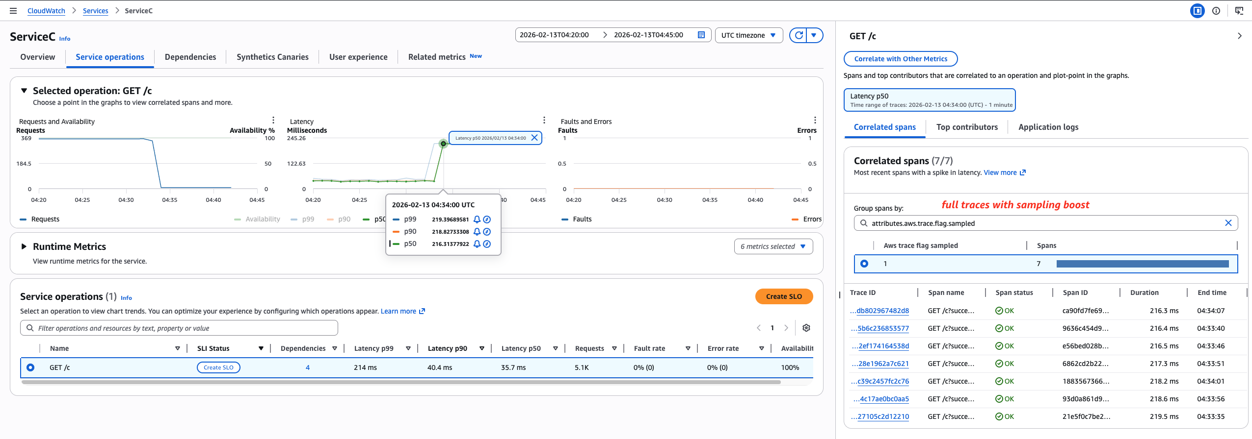 This post demonstrates how to configure adaptive sampling with X-Ray to capture critical spans while balancing observability depth and cost. X-Ray adaptive sampling helps you respond dynamically to runtime anomalies by combining Sampling Boost with Anomaly Span Capture. This helps collect critical diagnostic data without increasing steady-state trace volume and cost.
