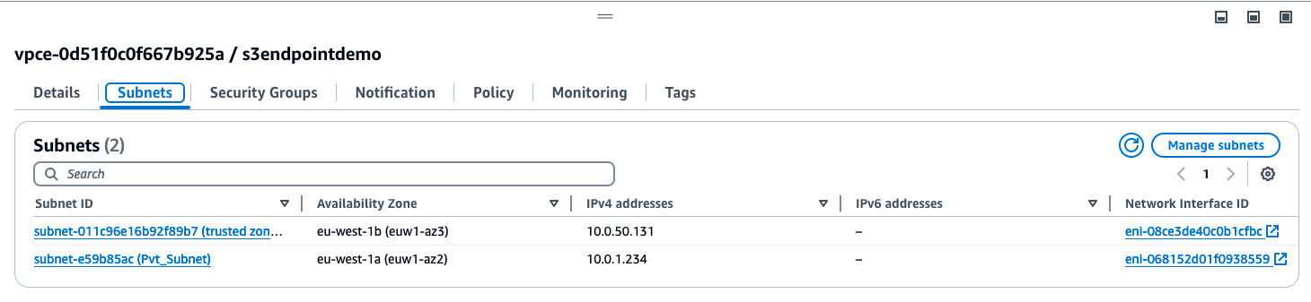 Figure 3: Private IP addresses for Amazon S3 interface endpoints