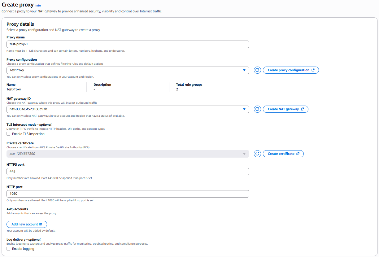 Step 2: Creating Network Firewall Proxy Using the proxy Configuration
