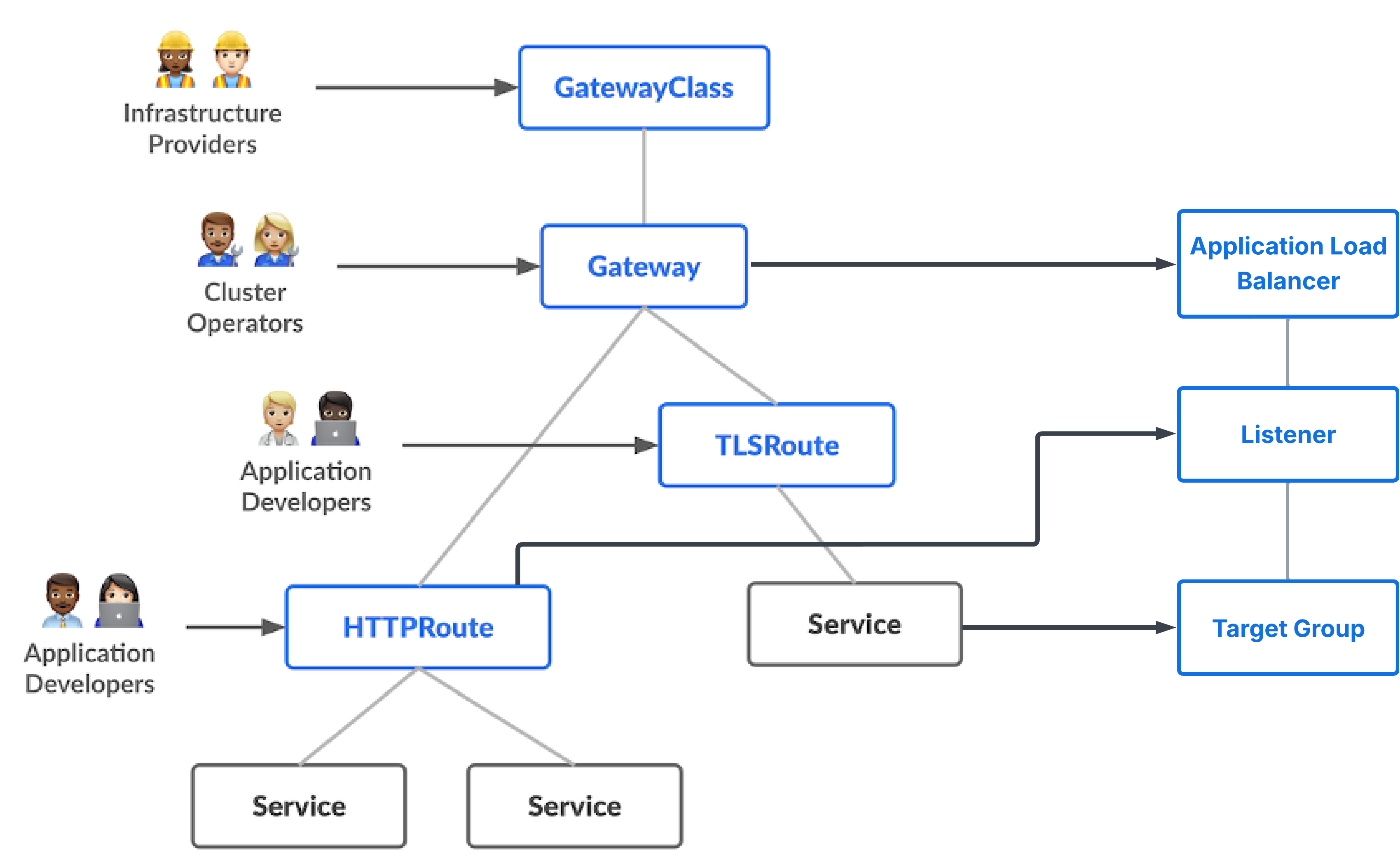 These are shown in the following diagram (Figure 1). For details, refer to the Kubernetes Gateway API documentation.