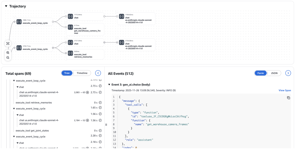 This creates a natural division of labor – Strands handles high-level task decomposition while GR00T handles millisecond-level sensorimotor control with real-time self-correction.