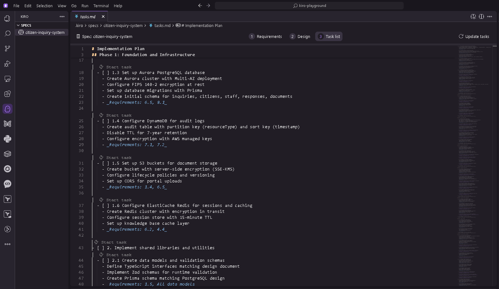 Figure 10: Implementation tasks in Kiro