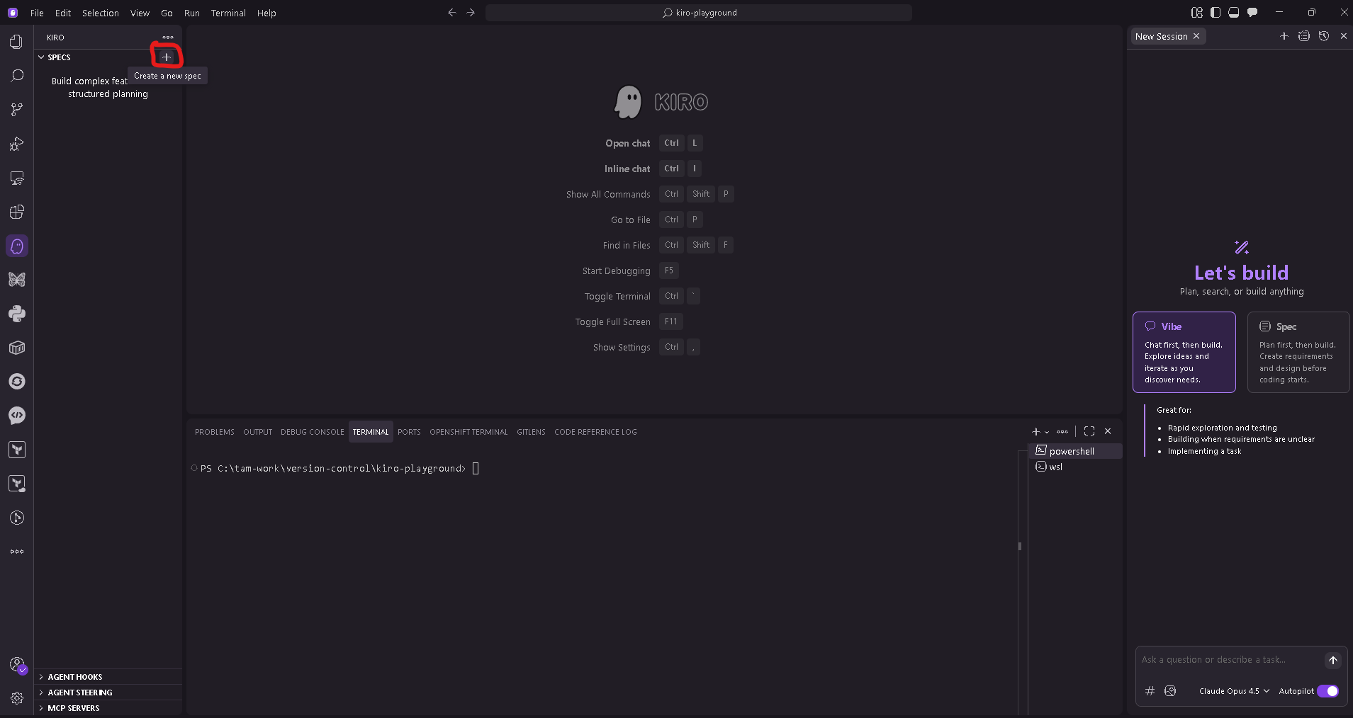 1. Open Kiro and choose the option to create a new spec.