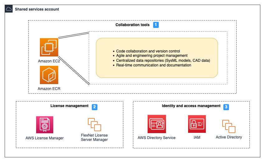 - The shared services account serves your enterprise identity management, licensing, software package management, container repositories, collaboration tools, and more.
