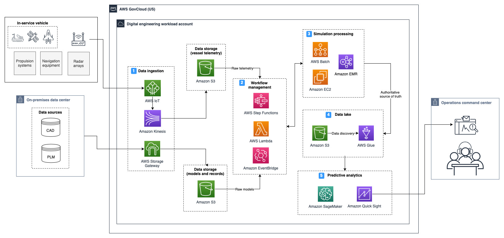 With the secure foundation and specialized accounts deployed, organizations can now implement flexible mission-specific workflows. Let’s explore how these digital engineering capabilities work together in a practical application that enables real-time predictive maintenance for in-service vehicles.