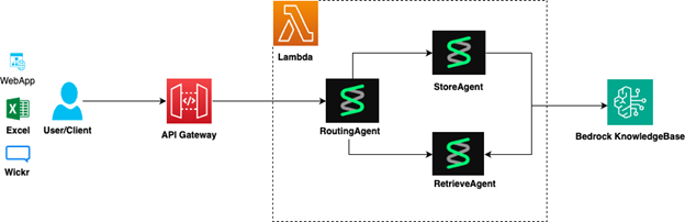 The core intelligence of the system resides in the agentic layer, built using the Strands Agents framework, an open source multi-agent orchestration SDK. This layer implements three specialized AI agents that work collaboratively: the routing agent, the retrieve agent, and the store agent.
