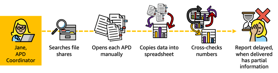 APD research suggests that state authors struggle with manual budget calculations, version control challenges, and information scattered across disconnected Word documents and spreadsheets, and CMS reviewers face lengthy, inconsistently formatted narratives requiring extensive clarification cycles.