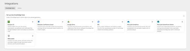 By using the spaces capability in Amazon Quick, you can create a collection of data and resources for your particular team. You can use spaces to seamlessly upload and organize files, dashboards, topics, knowledge bases, and application actions into a unified and customizable knowledge center for your team. This creates a resource that enables highly contextual conversations and is designed to scale across personal, team, and cross-team use cases. We created an APD Document Repository space in Quick and uploaded APD templates and other relevant documents to it. The following two screenshots show this repository and some common spaces integration options.