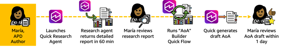 Amazon Quick Suite transforms APD authoring from a fragmented, error-prone process into a streamlined, intelligent workflow. We walked you through four scenarios: Jane consolidating portfolio reports across multiple APDs in hours instead of days, Terry managing scope changes with automated validation that catches inconsistencies before CMS review, María conducting comprehensive AoA research and generating compliant documentation in a fraction of the time, and Pat running pre-submission validations that identify and fix issues before they delay federal approval.
